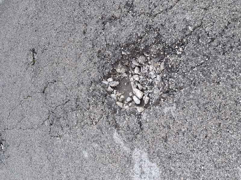 Buca su asfalto diametro ca 30 cm profondità 6/7cm